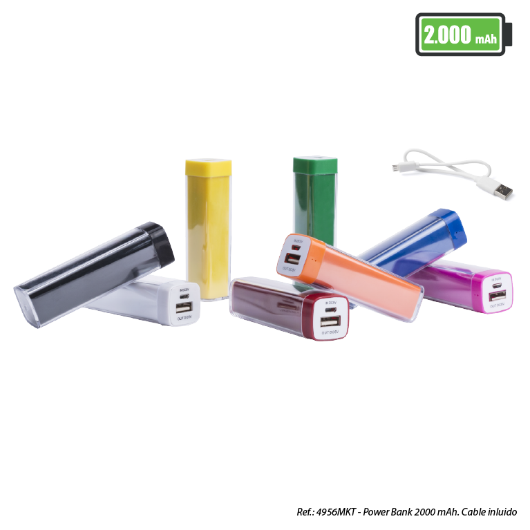 Esta batería externa de 2000 mAh. + Cable es el regalo publicitario perfecto para aquellos que no pueden vivir sin su dispositivo móvil.